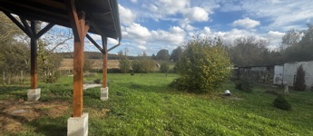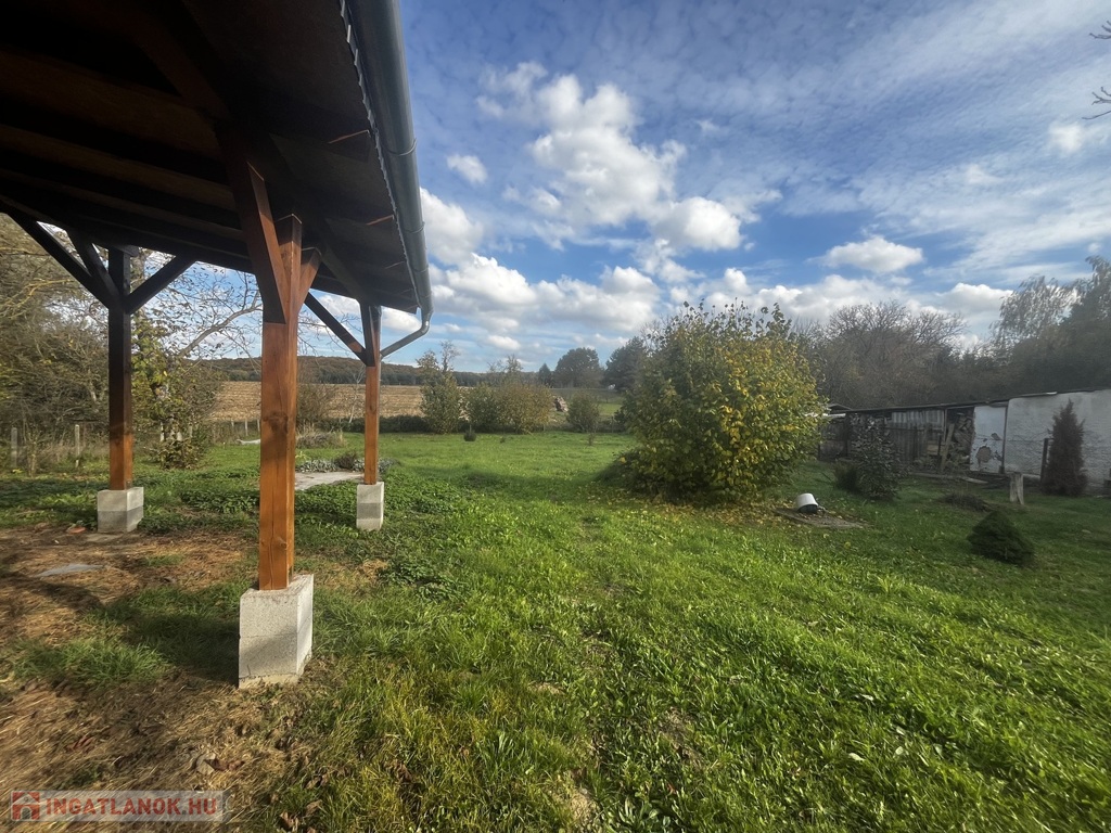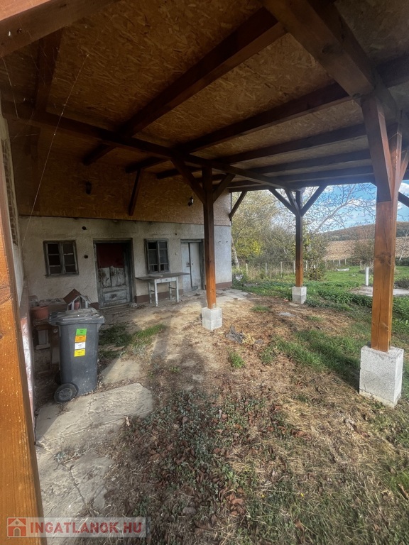 A telken található egy masszív, fa szerkezetű, fedett építmény, amely sokoldalúan használható – például kocsibeállónak, fedett terasznak vagy tárolónak is kiválóan alkalmas.