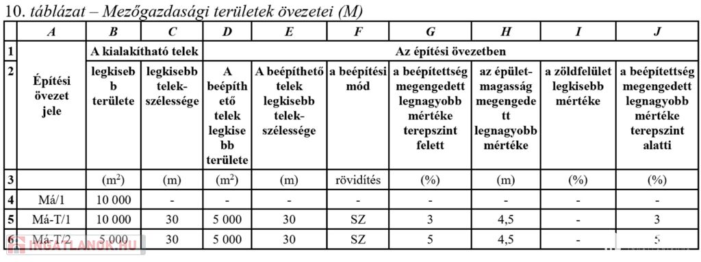 Má-T1 a a besorolása mely területeken a következő szábályokkal szerint hasznosítható: