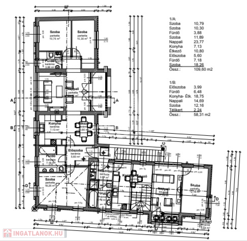 - Amerikai konyhás nappali + 3 szoba és 2 félszoba ( 160 m2)