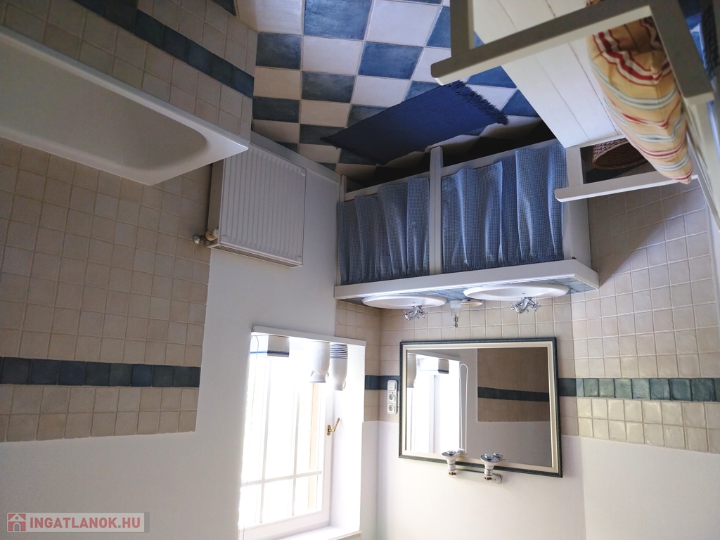 Emeleti szint: az emeletre kényelmes, elegáns, egyedi kőlépcső vezet, ahol három - tágas, jól bútorozható, külön bejáratú - hálószoba erkélykapcsolattal, ill. saját gardróbhelyiséggel és ablakos, kádas fürdőszoba található.