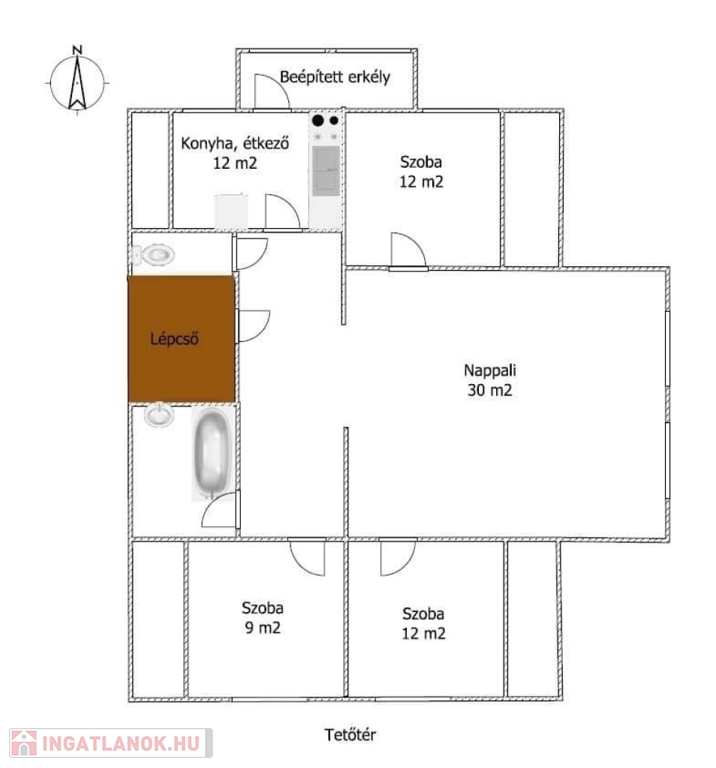 - hangulatos, beépített terasz