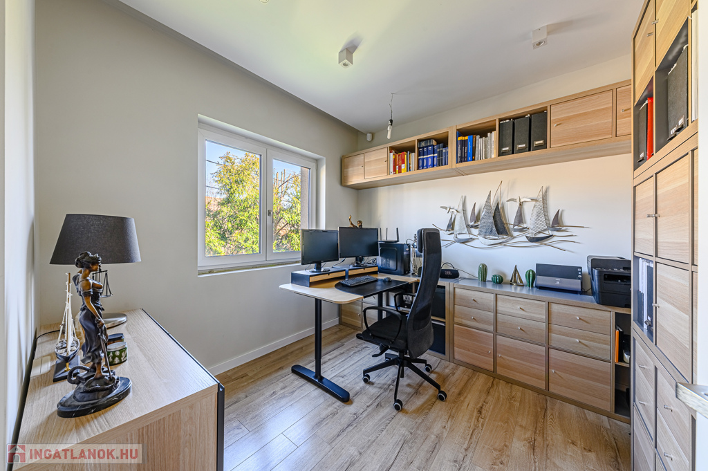 Ezen a szinten egy több mint 20 m²-es, ablakos helyiség is található, amely számos funkcióra alkalmas lehet – például konditerem, hobbihelyiség, szauna, vagy akár külön bejáratának köszönhetően iroda vagy szolgáltató funkció kialakítására is.