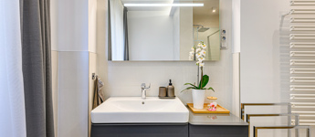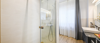 A belső kialakítás minőségi anyaghasználatot tükröz. Nagyméretű, prémium hidegburkolatok, fa hatású padlóburkolatok, HÜPPE zuhanykabinok, Hansgrohe csaptelepek és zuhanyrendszerek, Geberit fürdőszoba bútorok és beépített WC rendszerek kerültek beépítésre.