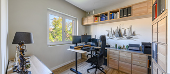 A ház teljes körű KNX okosotthon rendszerrel működik, amely Wi-Fi kapcsolaton keresztül vezérelhető. Egyetlen felületen szabályozható a fűtés, világítás, valamint az árnyékolás és az öntözőrendszer működése is, a modern, helytakarékos kapcsolók pedig elegáns módon integrálják a különböző funkciók vezérlését.