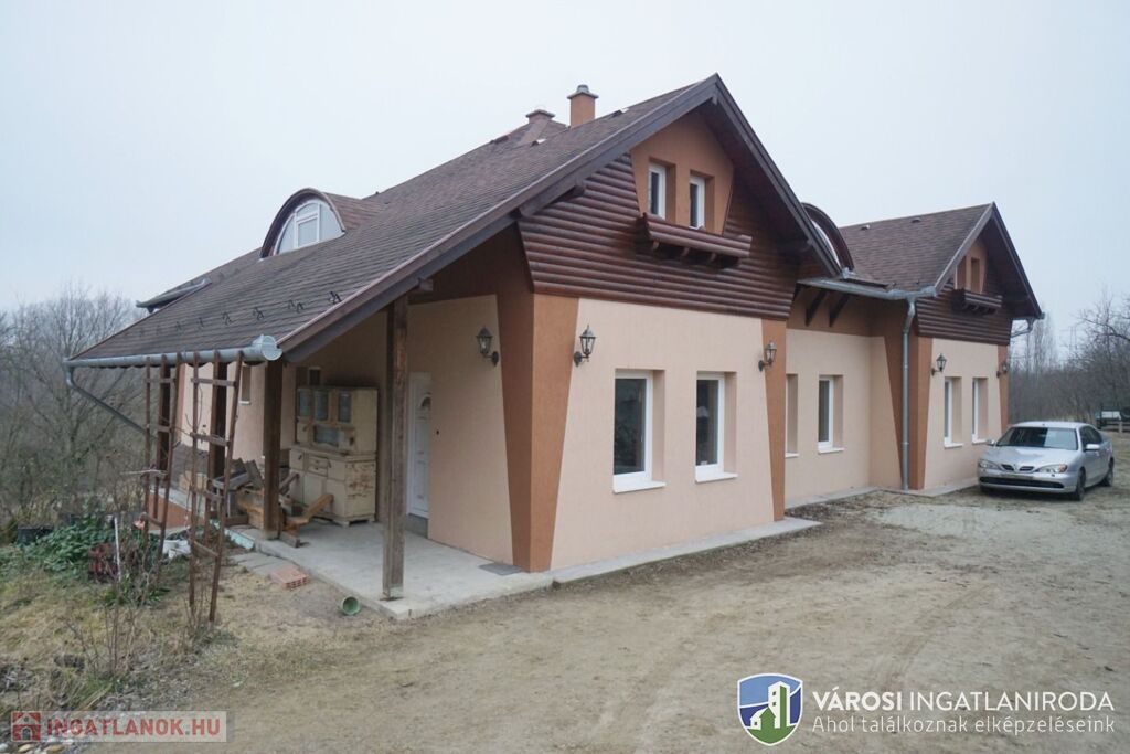 A területből 9278 nm részben lekerített építési terület, rajta 65 %-os készültségű 342 nm-es családi házzal.
