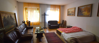 • A jobb oldali szárnyban egy 58 m²-es műterem, egy 57 m²-es nappali, egy hálószoba és egy fürdőszoba található. A műterem különösen ideális művészeknek vagy kreatív tevékenységhez. Az épület egyik igazi különlegessége a festett kazettás mennyezet, amely egyedi, művészi hangulatot áraszt.
