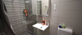 • A bal oldali lakótér egy tágas dolgozószobát, két hálószobát, egy konyhát, étkezőt, fürdőszobát és közlekedőt foglal magában.