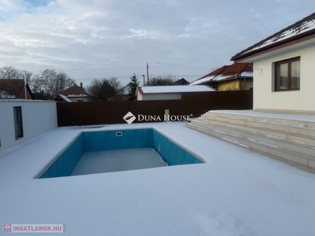 ÚJ építésű MEDENCÉS családi ház 150 m2-es kialakítású 554 m2 es telken helyezkedik el.
