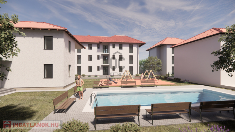 A teljes projekt befejezésével egyidejűleg elkészül a játszótér, a parkosítás és a medence is .