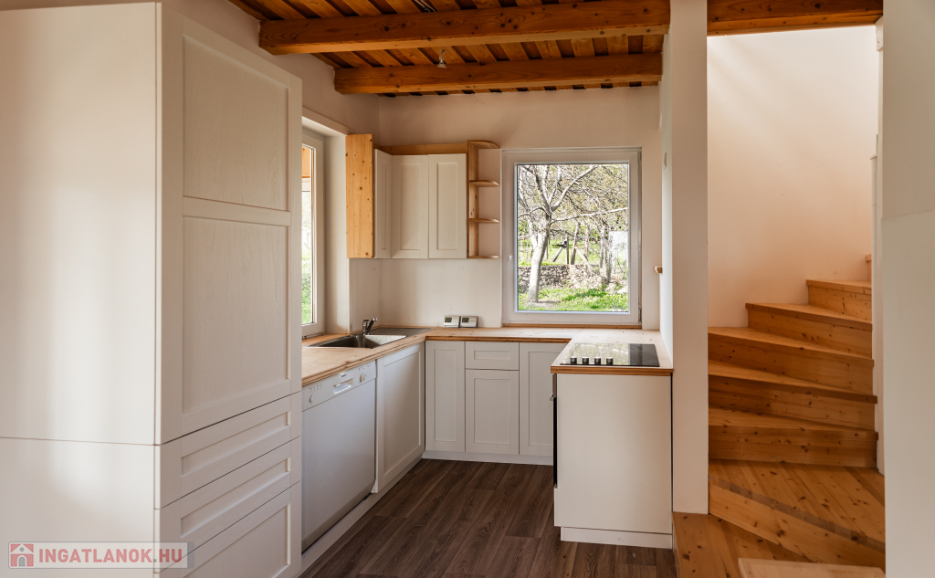 A ház ablakai Csókakő impozáns várára néznek, így a természet és a történelmi környezet harmóniája a mindennapok részévé válik.