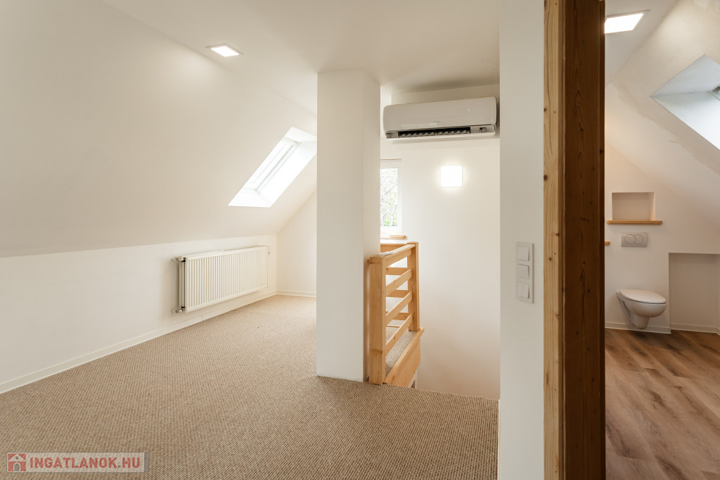 A felső szint fűtése radiátorokkal megoldott, így ideális háló- vagy gyermekszobák kialakítására.