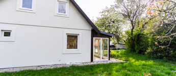 A ház egy kocsifelhajtón keresztül közelíthető meg, így intim, belső kerttel rendelkezik. A bejárat egy hangulatos télikertbe vezet, amely világos, barátságos fogadótérként szolgál.