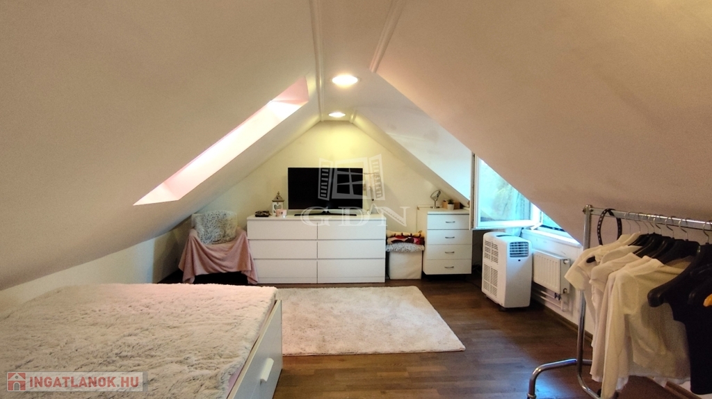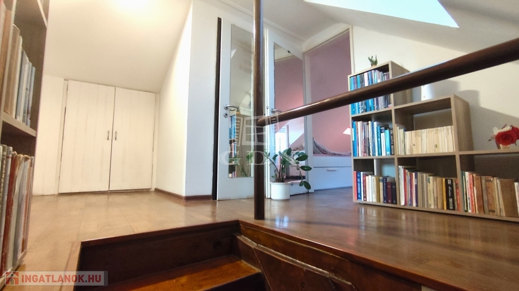 Az ingatlan egy kétlakásos épület felső szintjén található, így nem teljesen különálló ház,
