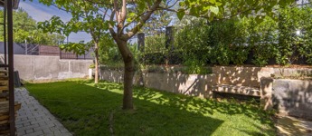 A telken mediterrán fű, autómata öntözőrendszer, fúrt kutak és rengeteg különleges fa és cserje saját gyökéröntözéssel.