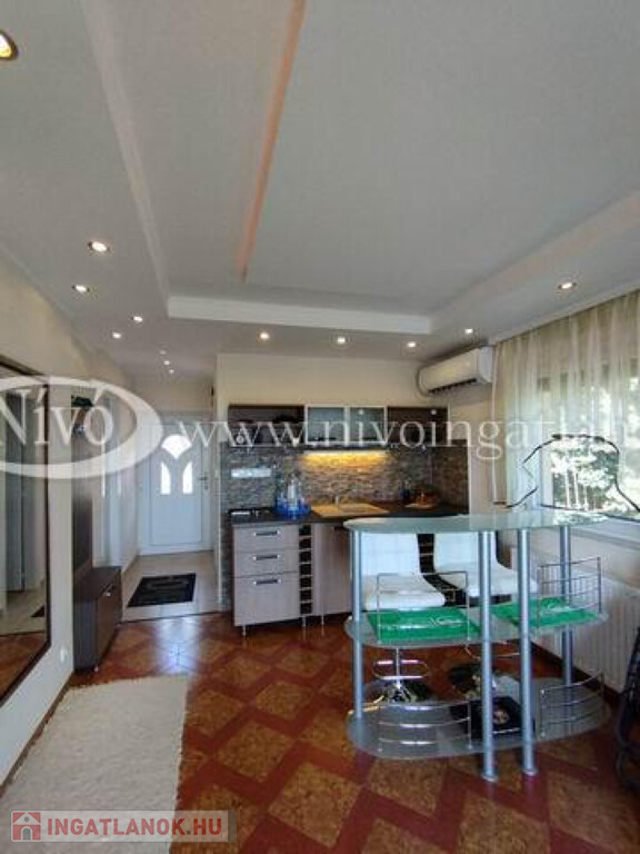 Az alsó szinten egy nappali-étkező, egy konyha, egy fürdőszoba és egy kamra található. Ezen a szinten hangulat fényekkel ellátott, 35 m2-es teraszról csodálhatjuk minden napszakban a Balaton szépségét. A felső szinten (utcaszint) az előszobából nyílik a nappali-teakonyha-étkező illetve két félszoba és egy zuhanyzós fürdőszoba. A 11 m2-es erkélyre kiülve madárcsicsergős reggelekre ébredhetünk.