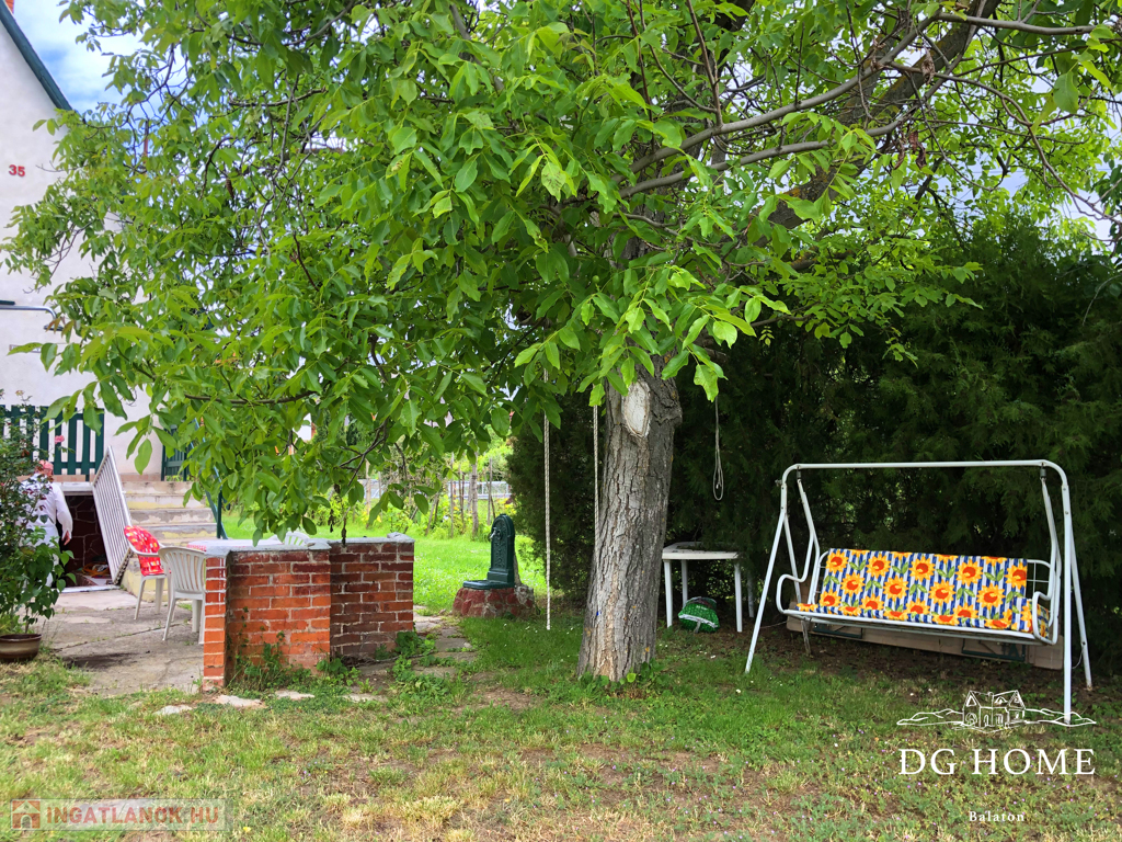 A házhoz tartozó kert is igazi kincs: egy hatalmas diófa gondoskodik a kellemes árnyékról a legmelegebb nyári napokon is, így a kerti pihenés, olvasás vagy beszélgetés mindig kényelmes lehet.