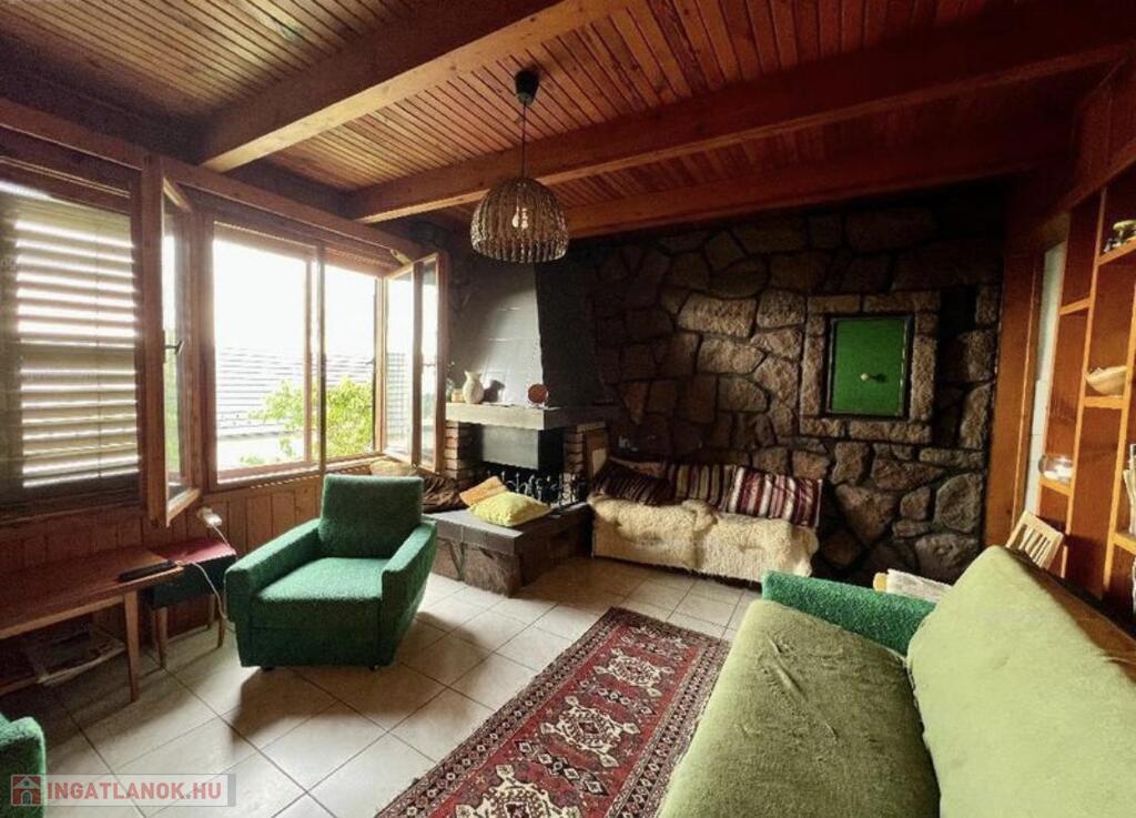 ✅ A felső szint könnyűszerkezetes, 10 cm-es szigeteléssel, így télen is lakható. Ezen a szinten kapott helyet egy hangulatos kandallóval a nappali, illetve a konyha, fürdő és hálószoba.