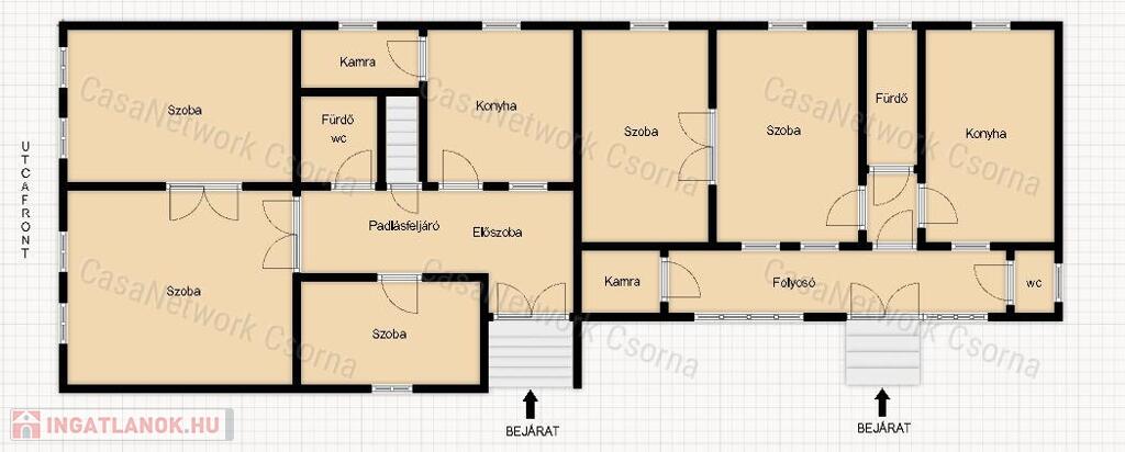 Csornai Casanetwork Ingatlan eladásra kínál Csorna közkedvelt utcájában egy eladó kétgenerációs családi házat.Az eladó családi ház jellemzői:-két külön bejáratú lakás: 112 és 80 nm-es;- 1. magasföldszinti polgári lakás: 2 szoba -nappali, fürdő-wc, konyha, kamra, közlekedő;-2. lakás: 1 szoba -nappali; konyha, fürdő, wc, kamra, közlekedő;-tágas melléképületek;-kert termő gyümölcsfákkal;-a lakások akár ebben a formában költözhetőek, vagy társasház építésére is alkalmas 50%-os beépíthetőséggel a telek;-használja ki a 3 millió forintos állami támogatást felújításra!- közelben minden megtalálható: iskola, óvoda, boltok, közintézmények;- a gyorsforgalmi utakon minden nagyobb város 1 órán belül elérhető a megyében, illetve Ausztria is.Amennyiben felkeltette érdeklődését az eladó kétgenerációs családi ház hívja a +36-70/423-5353-as telefonszámot.Teljes körű szolgáltatásokkal várjuk ügyfeleinket!