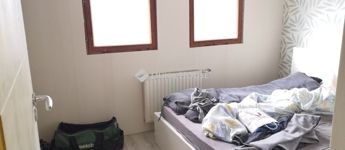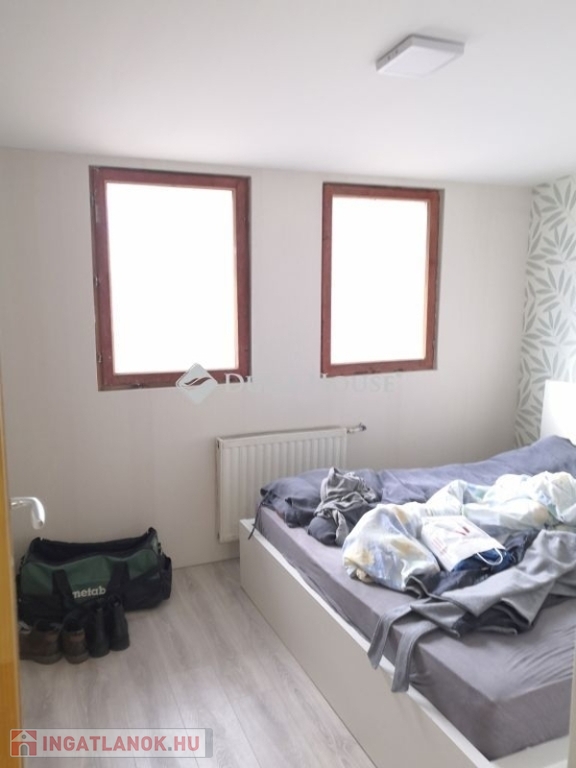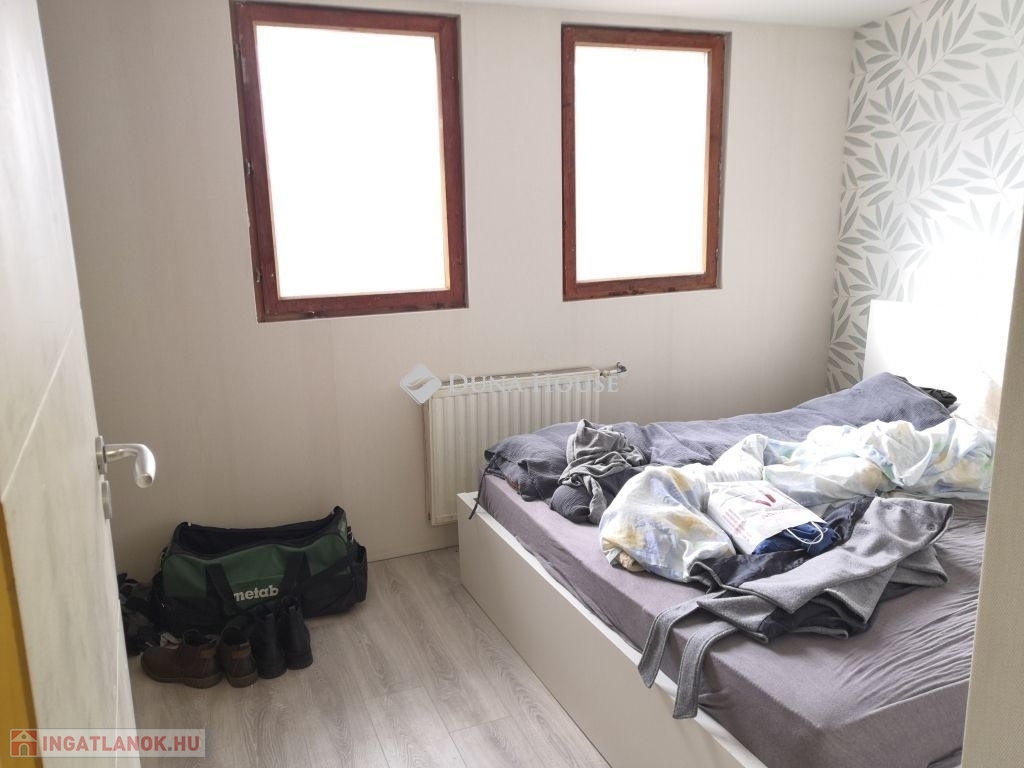 Az ingatlan belső két szintes kialakítású. Földszintjén egy nappaliszoba, két hálószoba, egy fürdőszoba+wc, és egy konyha helyiségek találhatóak, melyhez egy jelenleg tárolóként használt, tágas helyiség is csatlakozik, mely könnyedén hálószobává is átalakítható. Felső szintje beépített tetőtér, mely jelenleg egy helyiség, de könnyen szétválasztható szintén 2 különnyíló hálószobává. Innen egy napfényes tájolású, zöldre néző erkély is nyílik.