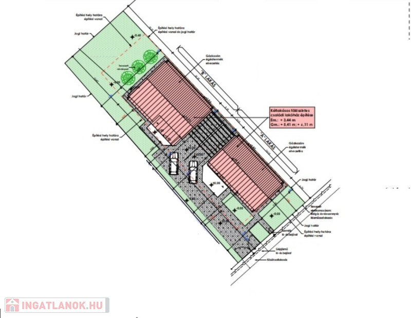 Budapesttől 35 percre, Dabas központi részén, eladó egy 91 nm-es (autó beállóval) ikerház fél 400 nm-es telekkel. A ház kétlakásos ikerház. A házak egy telken helyezkednek el garázskapcsolattal. A házban egy amerikai konyha-nappali-étkező, 2 db hálószoba, fürdőszoba, külön wc, spejz, gardrób, előtér, fedett terasz, valamit garázs lesznek kialakítva . Műszaki paraméterek: Sávalap vasbeton erősítéssel . Az épület falazata téglából készült 15 cm hőszigeteléssel. A tetőre antracit lemez fedés került . A homlokzat színe fehér. Nyílászárók műanyag szerkezetű bukó -nyíló kivitelben 3 rétegű üvegezéssel készültek. A ház fűtése padlófűtés, amit hőszivattyús rendszer biztosít, ezekhez napelem kiállás is biztosítva lesz ( így akár 0 Ft-os rezsijű otthonban élhet aki ezt a házat választja). A ház bejárata előtt a járda viacolorból készült el. A vonat, busz járat 5-10 percre, Iskola, óvoda, orvosi rendelő, gyógyszertár, bevásárló központ akár gyalogosan is elérhető. Amennyiben felkeltette érdeklődését, hívja a 06204004006-os számot