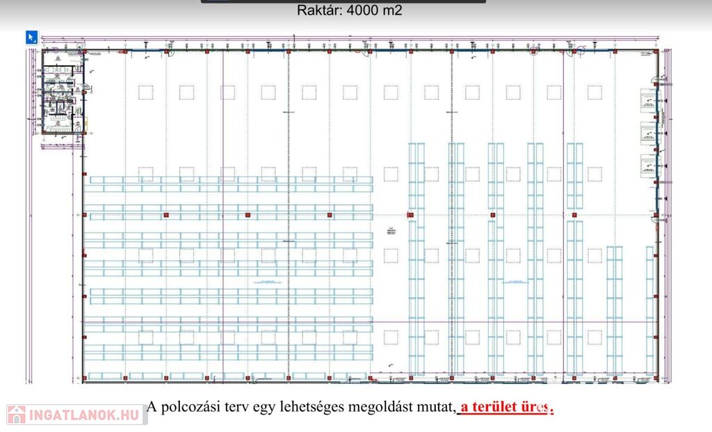 Az ipari létesítmény földszintjén helyezkedik el a termelői rész, a raktárcsarnok, valamint az irodai és szociális helyiségek (öltöző, kézmosó, férfi és női WC, zuhanyzók és teakonyha).