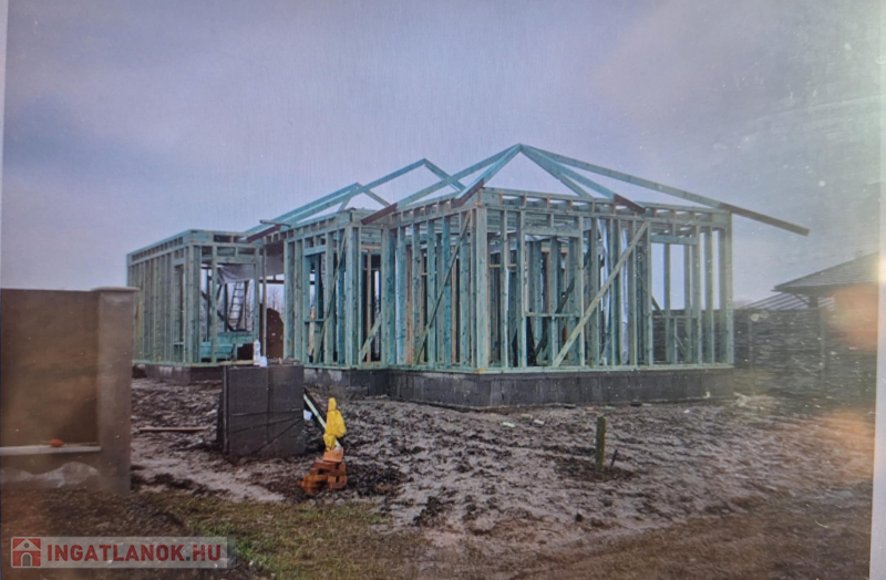 Eladásra kínálok Pest Vármegyében egy könnyűszerkezetes technologiával épített családi, vagy ikerházat. Megvásárolt telekre 6 hónap alatt felépül álmai otthona, vagy saját meglévő telkére megépíti a kivitelező. Bruttó: 470.000 nm ár. Ami az építkezés tartalmaz: Alapozás: Tervdokumentáció alapján. (80 cm mély 40 cm széles), vasszerelt sávalap készítése. 1 sor zsalukő betonozva, alaptest feltöltése, 13 cm - térhálóval szerelt szerelőbetonnal. Aljzat készítés: Szerelőbetonra 10 cm eps lépésálló hőszigetelés, technológiai fólia borítás, és 7cm vastag, vashálóval, padlófűtéssel szerelt estrich beton készítés. Hideg, vagy meleg burkolás .Falazat: Külső teherhordó főfal: Tervdokumentáció szerint - helyszínen szerelt, 5 x 15 cm-es fa vázszerkezet, közötte 15 cm-es ásványgyapot hőszigetelés. Belső oldalon párazáró fólia, ragasztott illesztésekkel, lécváz, és 15 mm-es tűzálló gipszkarton borítás Külső oldalon 12 mm-es Osb borítás, 15 cm-es eps hőszigetelő rendszer dryvitozva, színezve. Belső teherhordó fal: Tervdokumentáció szerint – helyszínen szerelt, 5 x 15 cm-es fa vázszerkezet, közötte 15 cm-es ásványgyapot hőszigetelés, mindkét oldalról 15 mm-es tűzálló gipszkarton borítás. Válaszfalak: tervdokumentáció szerint - helyszínen szerelt, 5 x 10 cm-es fa vázszerkezet, közötte 10 cm-es ásványgyapot hőszigetelés, mindkét oldalról 15 mm-es tűzálló gipszkarton borítás. Tetőszerkezet: tervdokumentáció szerinti helyszínen ácsolt tetőszerkezet, külső cserépfedés, Bramac, Terrán, Tondach beton, hullámos alapcseréppel. Födémszerkezet. Ereszcsatorna. Belső felületképzések: Oldalfalak; gipszkarton borítás/, 2x glettelés, 2x festés fehér színre. Mennyezet: Gipszkarton, egysíkú mennyezet készítése, 2x glettelés, 2x festés fehér színre. Fűtés és víz rendszer: hagyományos, gáz, vagy elektromos üzemeltetésű fűtés, és vízrendszer, víz üzemű padlófűtés rendszerrel. HMV rendszer, villany bojler, egybeépített meleg víz tárolóval. Külső szigetelés - színezés: tervdokumentáció szerinti, /15 cm-es/ dryvit hőszigetelés, gördülőszemcsés, vékony homlokzati nemesvakolat, választott színben Lábazat: hőszigetelés tervdokumentáció szerint, /8 cm-es/gyöngykavics lábazati vakolat, választott színben. Bejárati ajtó: Garázskapu, Külső, homlokzati nyílászárók: erkélyajtó: Beltéri ajtók: Kulcsra késszen értendő az ár burkolatokkal, szaniterekkel. 47 M + TELEK. Ha felkeltette érdeklődését kérem hívjon. Vass Erika O62O4OO4O26