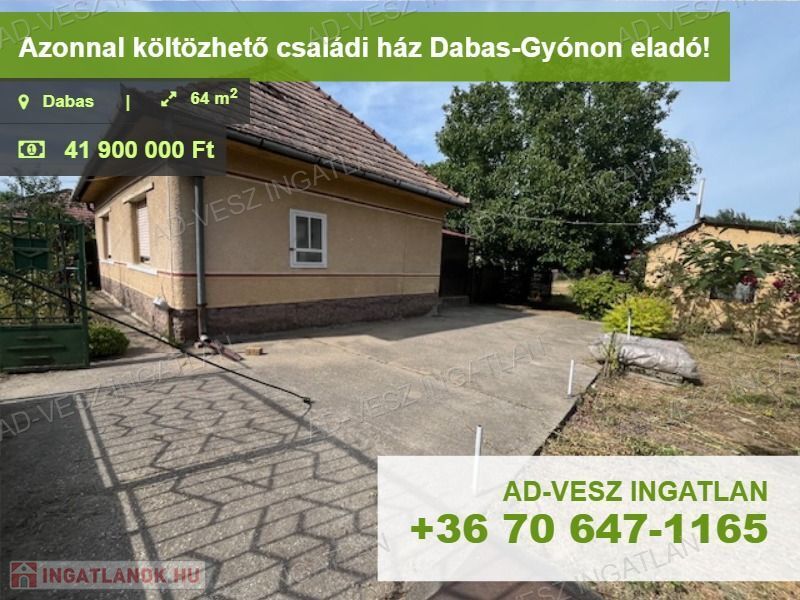 Eladó Dabas-Gyónon egy tehermentes, azonnal költözhető családi ház. Így ideális választás mindazok számára, akik gyorsan szeretnének új otthonba költözni.