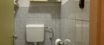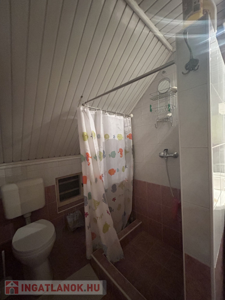 fürdőszoba zuhanyzóval, wc-vel