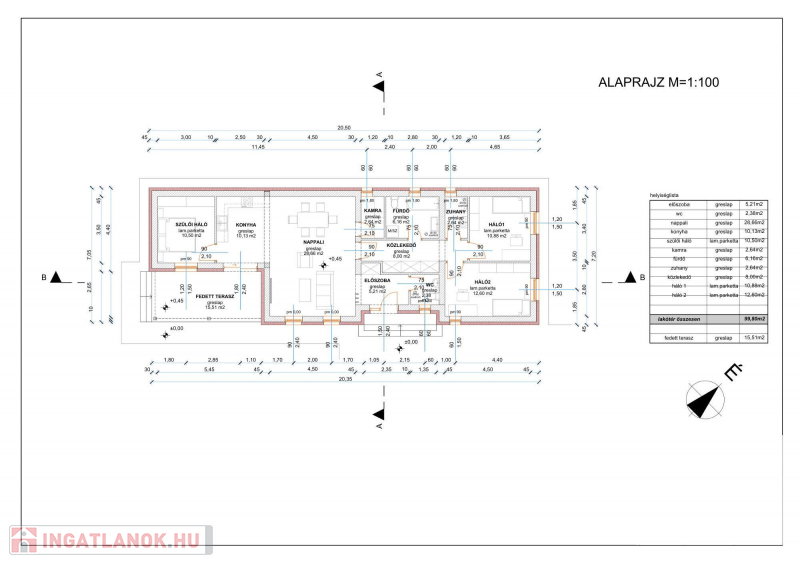 Lakóterület: nettó 100 m²