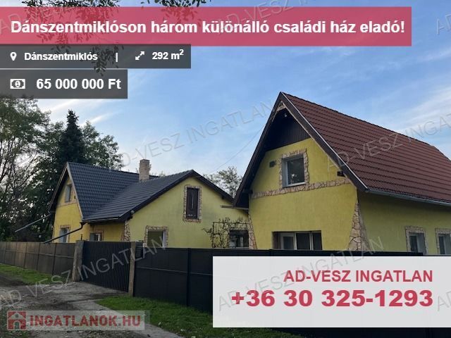 Pest vármegyében Dánszentmiklóson, 2765m2-es telken három különálló, téglaépítésű, azonnal költözhető családi ház eladó. Kíválló lehetőségeket nyújt több generáció együttélésére, vagy akár befektetési célú kiadásra is.