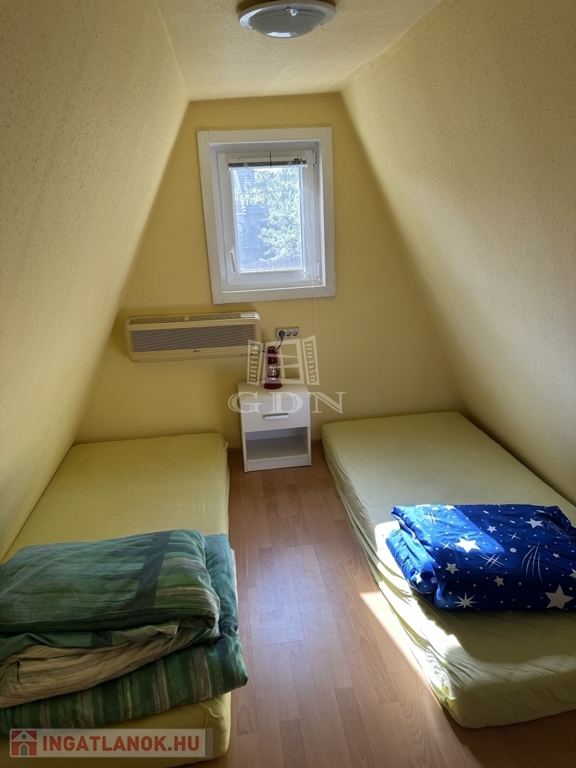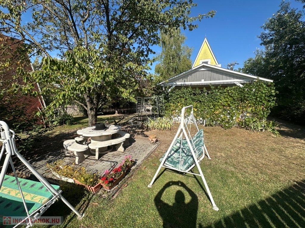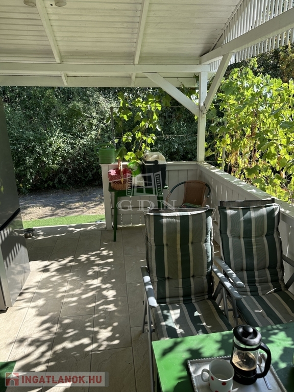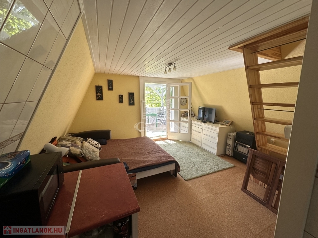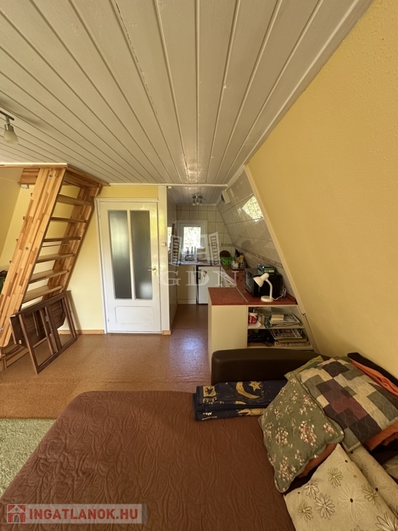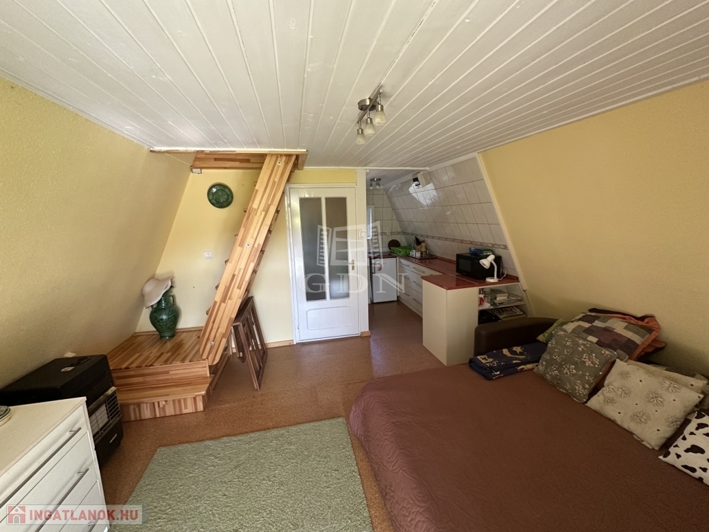 A telken található egy 30 m2-es hasznos alapterületű kétszintes faház. Alsó szint-nappali, konyha, fürdőszoba, felső szint-két hálő helység. A zuhanyzóban a meleg víz előállítás elektromos átfolyós vízmelegítővel megoldott.