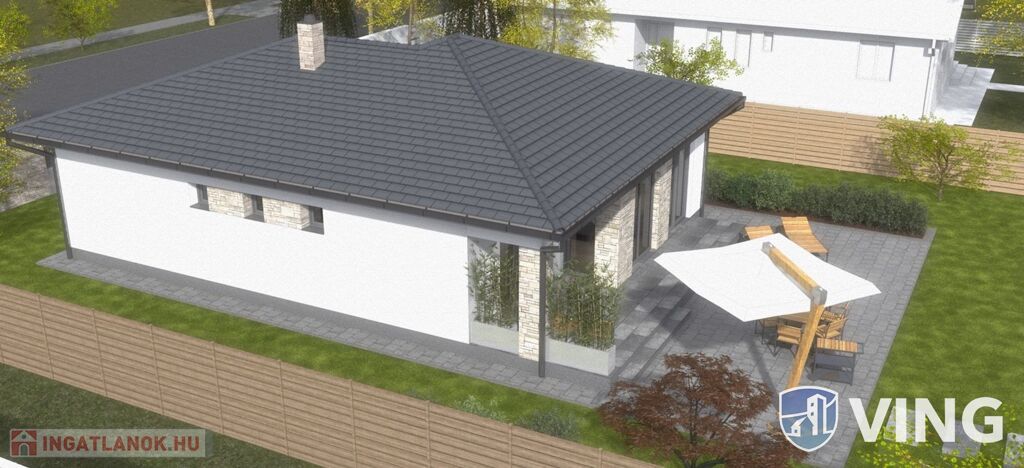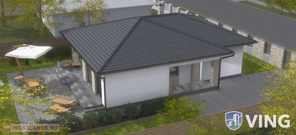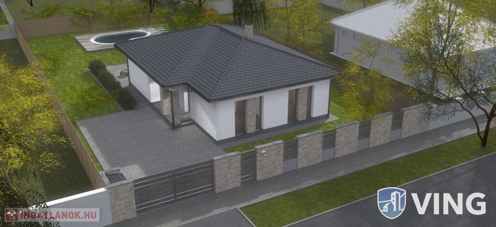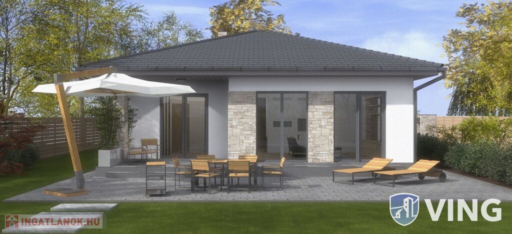 A hirdetésben szereplő ház 95 m2 alapterületű, amerikai konyhás nappali + 3 hálószobás elrendezésű 2 fürdőszobával. Igénybe vehető rá minden fajta állami támogatás és CSOK+ hitel, illetve ÁFA visszaigénylés is!