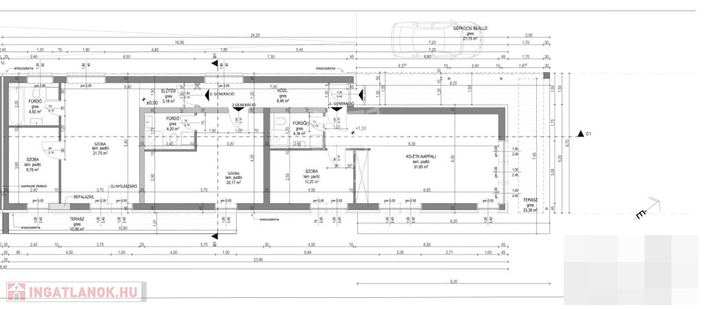 Összesen 117,83 nm, + 71 nm terasz.