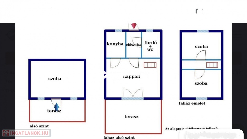 Alsó faház szint: terasz, nappali, konyha, előszoba, fürdő/WC (34 m²)