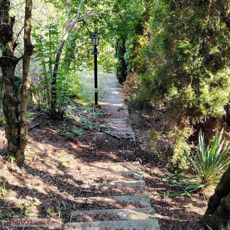 A lépcsők tetején igazi jutalom vár: egy eldugott, intim menedék, ahol közvetlen szomszédok nélkül élvezhető a természet közelsége és a szabadság érzése. Az utcafrontnál autóbeálló is kialakításra került.