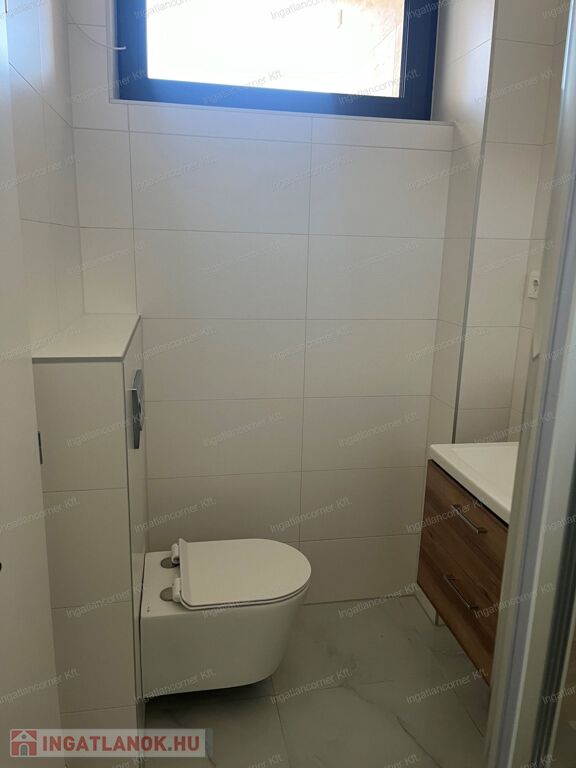 Az alsó szinten helyet kapott egy tágas amerikai konyhás-étkező, nappalival, valamint mellékhelyiség mosdóval.