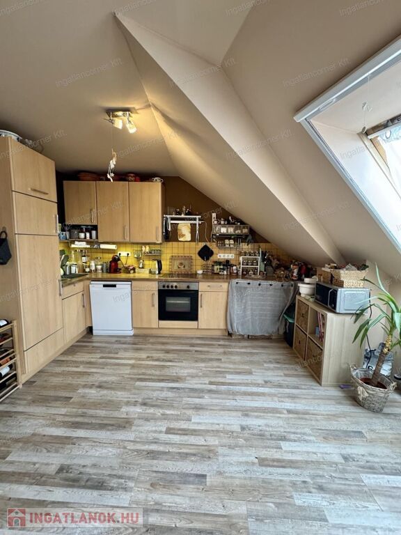 Elrendezését tekintve kiváló: előszoba, külön wc, egy nagyobb és egy kisebb hálószoba, jó méretű, nagyon világos, amerikai konyhás nappali, kádas fürdő. A lépcsőház is rendezett.