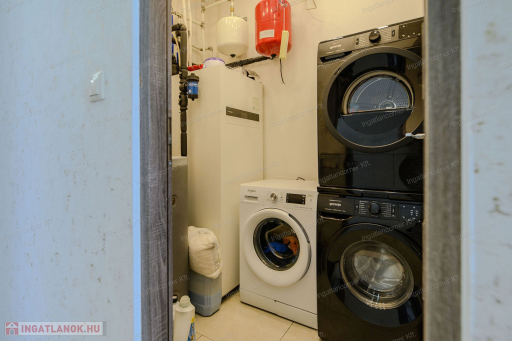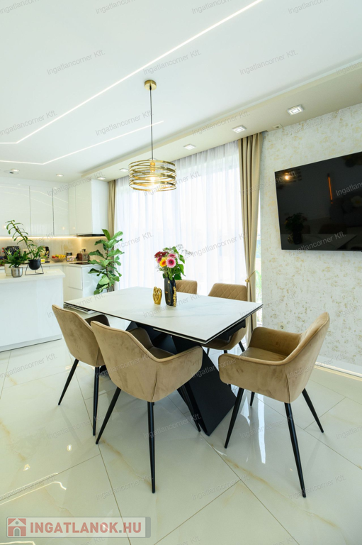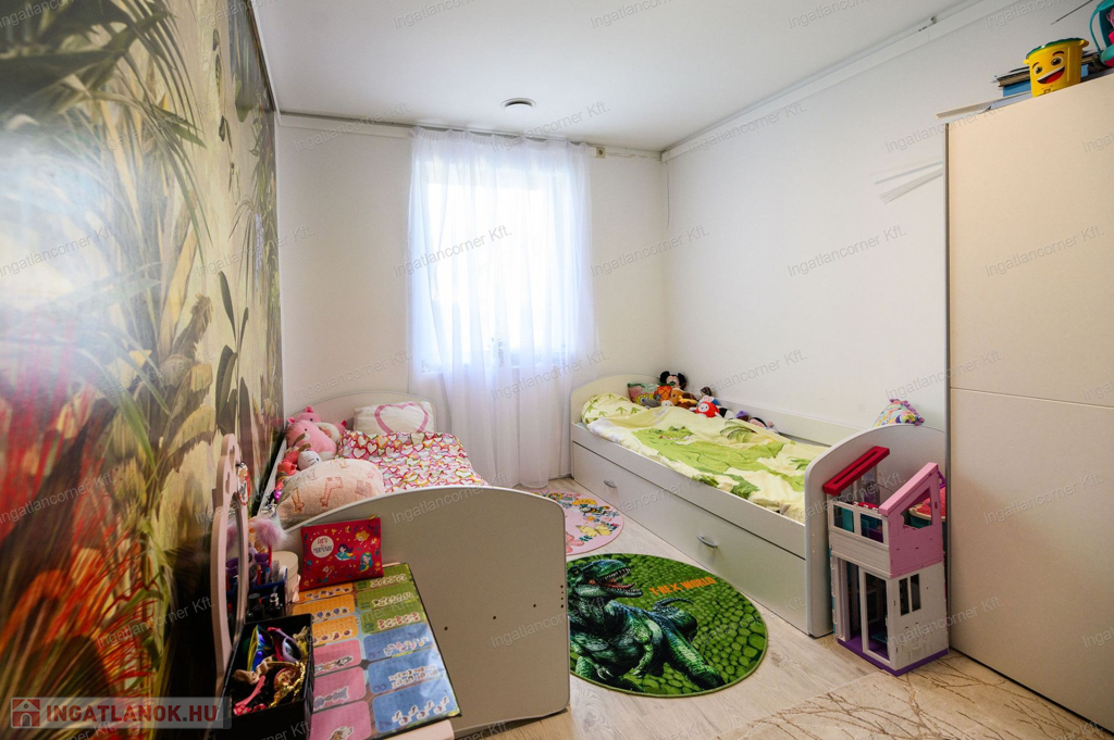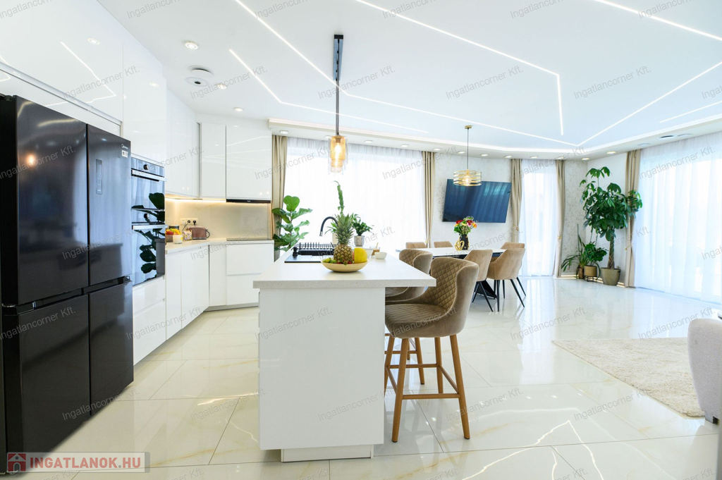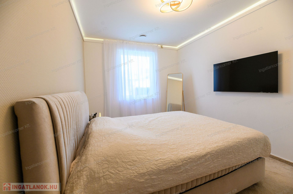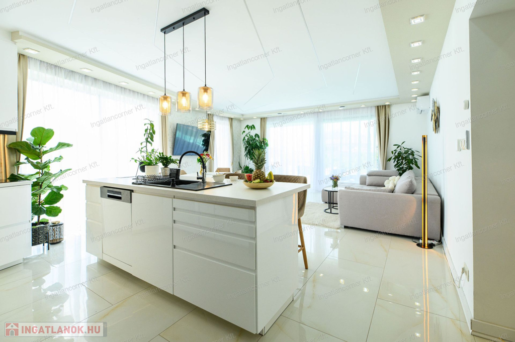 Az amerikai konyhás nappali tágas és világos, a hálószobák külön nyílóak. A nyílászárokon elektromos alumínium redőny és szúnyogháló található.