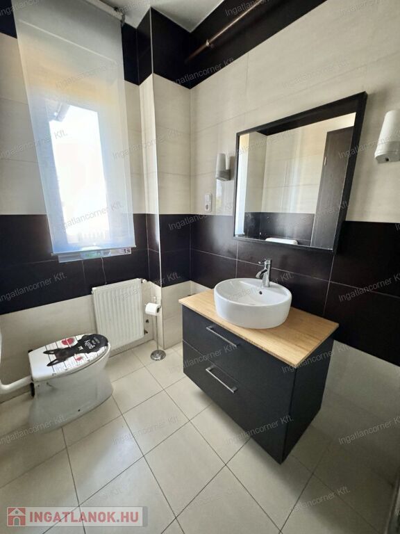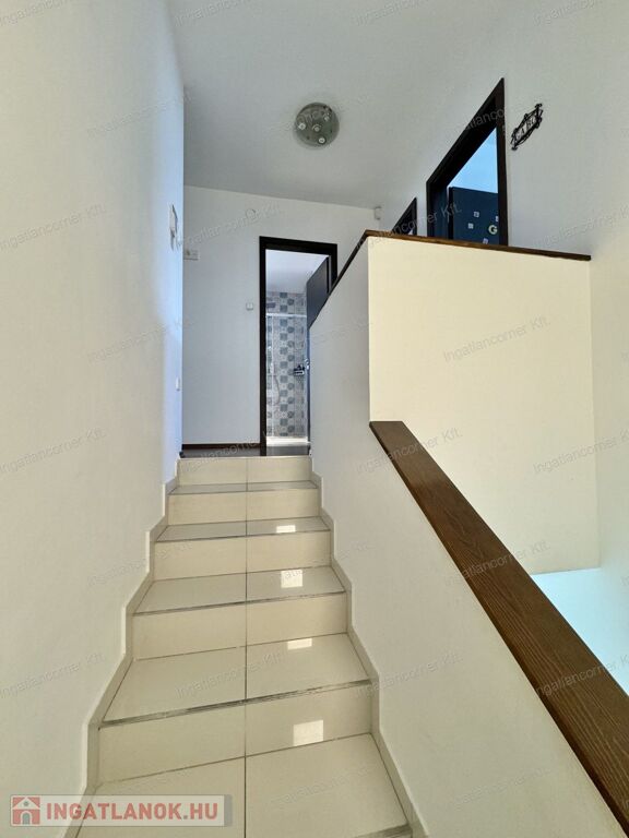Az alsó szinten található az előszoba, zuhanyzó wc-vel, vendégszoba, konyha étkezővel, hatalmas kamra, nappali kapott helyet az alsó szinten. A nappaliból egy üvegajtón keresztül léphetünk ki a 18 nm-es teraszra, amely a hátsó kertre nyílik. A felső szinten 3 hálószoba, egy óriási méretű fürdőszoba zuhannyal és WC-vel kapott helyet. A SZOBÁK NAGYOK: 15nm, 16nm, 17nm, 18nm. A nappali – konyha – étkező összesen 48 nm. A padlástér ki lett alakítva, pakolható.