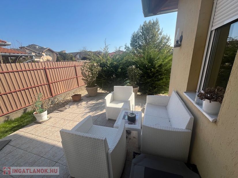 Dunaharaszti Bezerédi lakóparkban 2006-ban épült földszintes újszerű állapotú, 97,50 nm lakóterű amerikai konyhás nappali + 3 szobás ikerház 407 nm parkosított telekkel eladó.