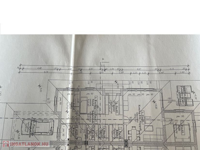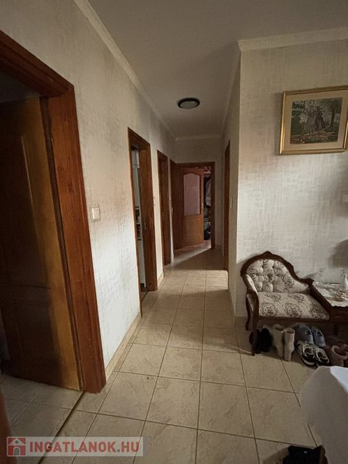 Elosztása: előtér, fürdőszoba, wc, kamra, mosókonyha, amerikai konyhás nappali, 3 külön bejáratú szoba.