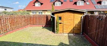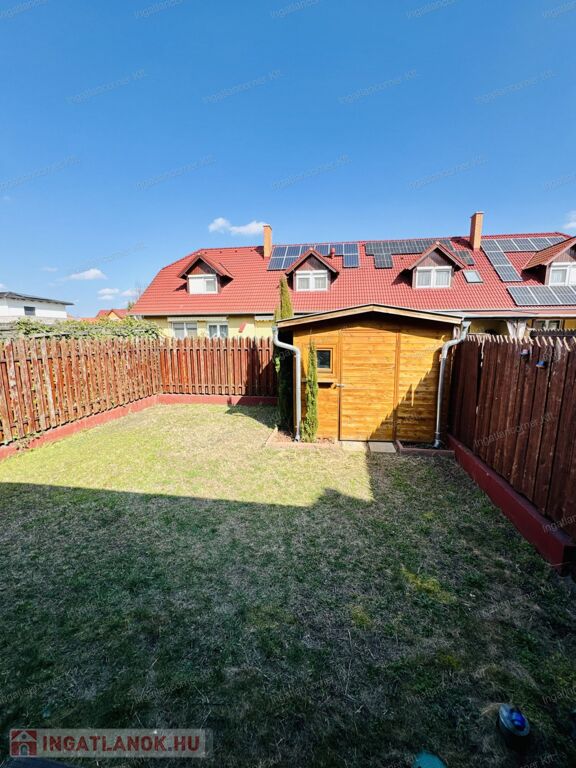 A kertben automata öntözőrendszer van kiépítve a fúrt kútról, továbbá egy fa külső tároló található még az udvaron.