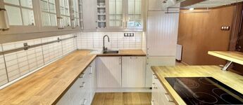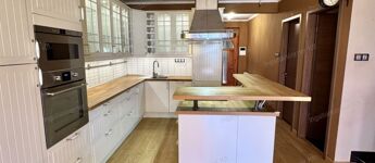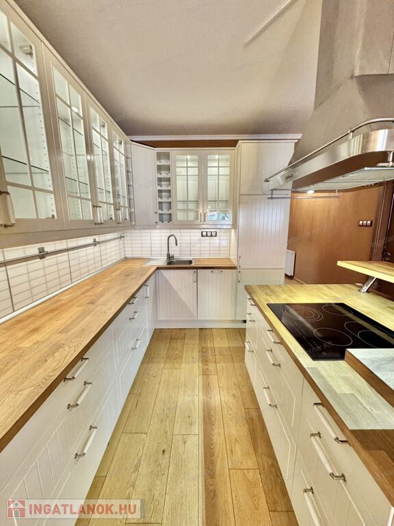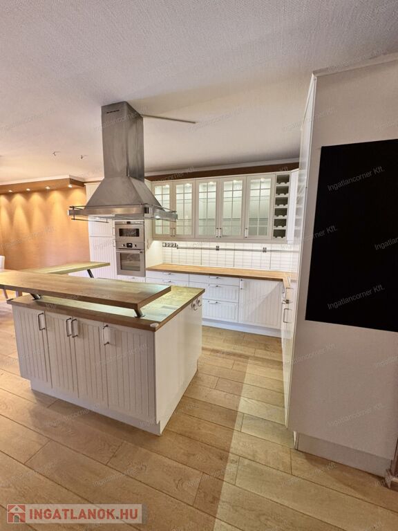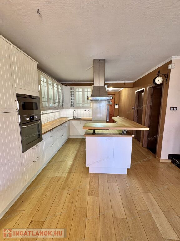 A nappali tölgyfa parkettàval burkolt és a saját kertre néz. A konyha felszereltsége: beépített sütő, -főzőlap, -mikró, -hűtő -mélyhűtő, -páraelszívó és -mosogatógép illetve konyha sziget.