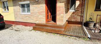2010-ben, 38 cm-es Porotherm téglából épült, 5 cm szigeteléssel. Az ablakokon szúnyogháló és redőny található.