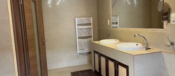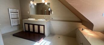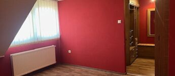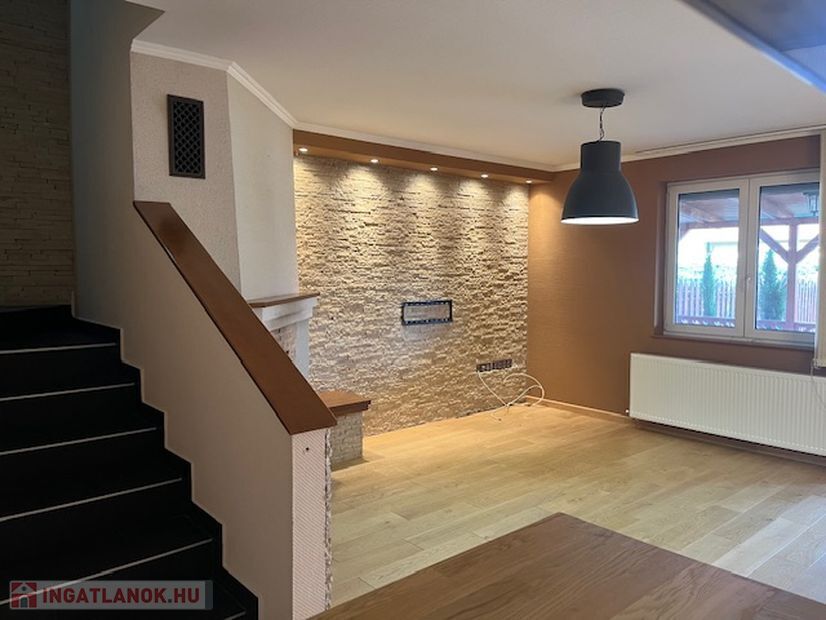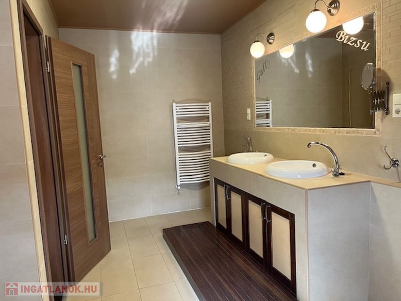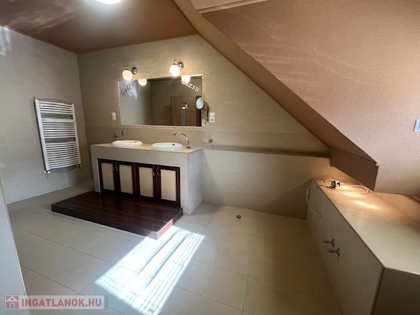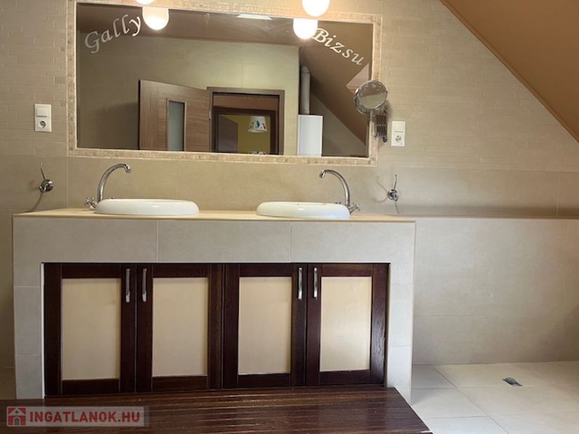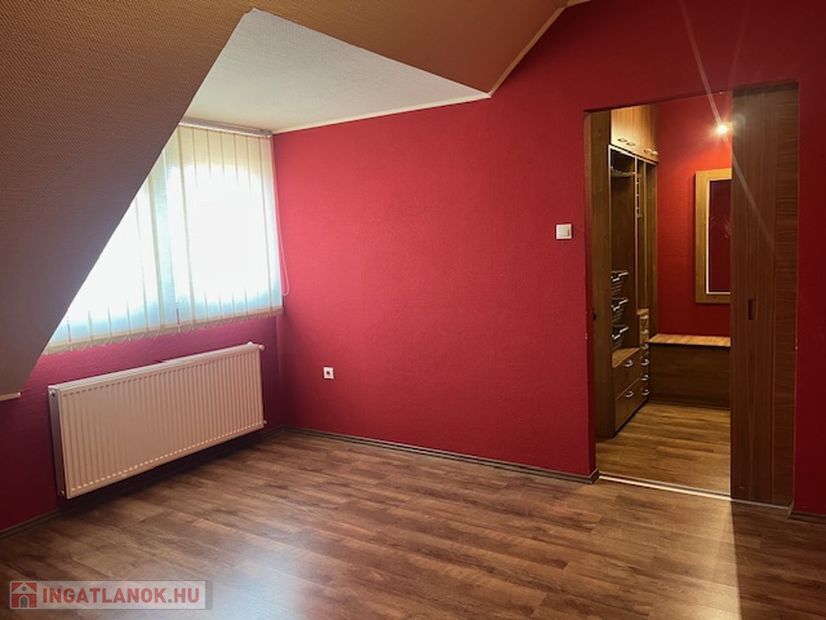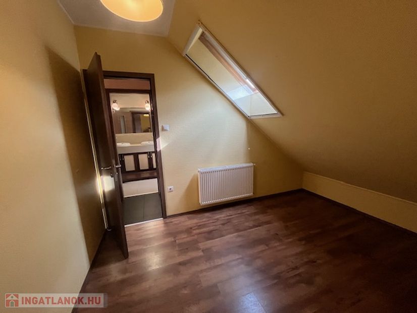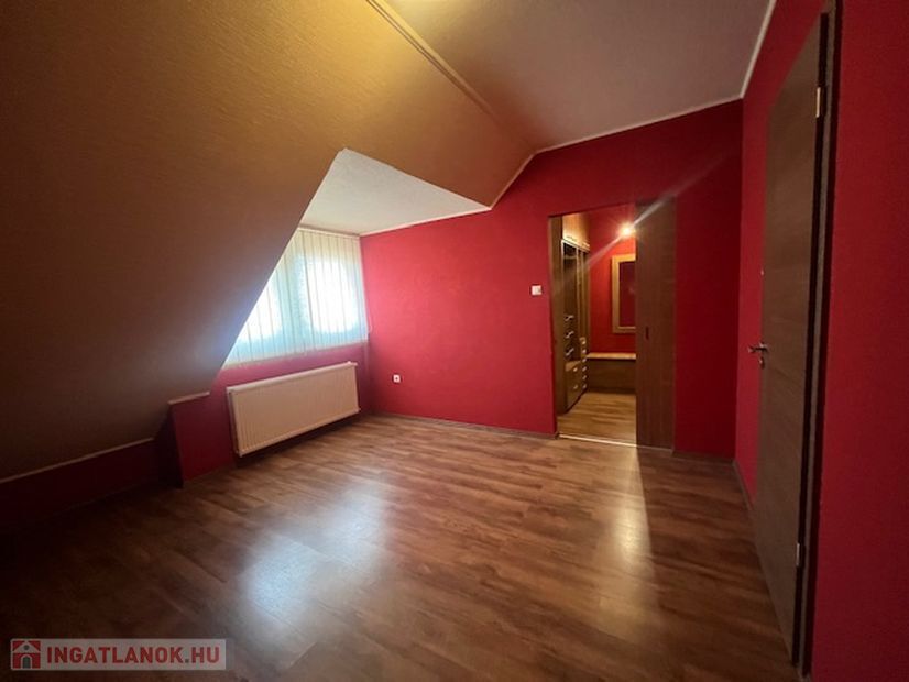 Az emeleten 2 szoba és egy teljesen beépített gardrobszoba, nagy fürdőszoba. Fűtés:Padlófűtés a fürdőszobákban, gázcírkó, nappaliban épített kandalló is.