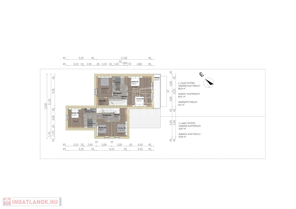 - 2 fürdőszoba + gardrób