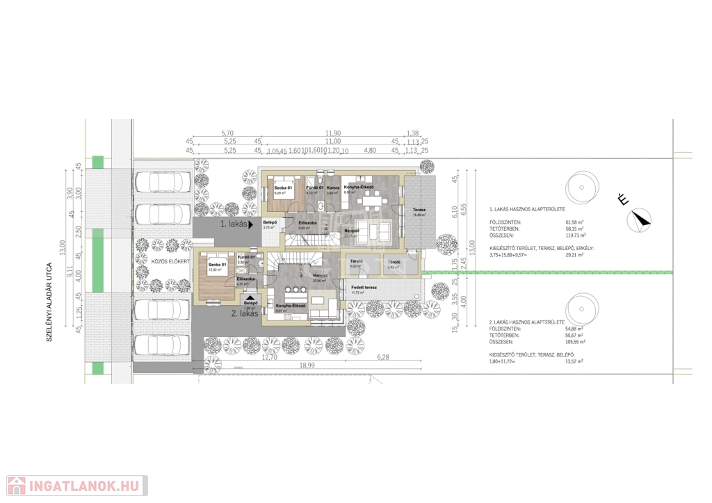 - 405 m² saját telekrész