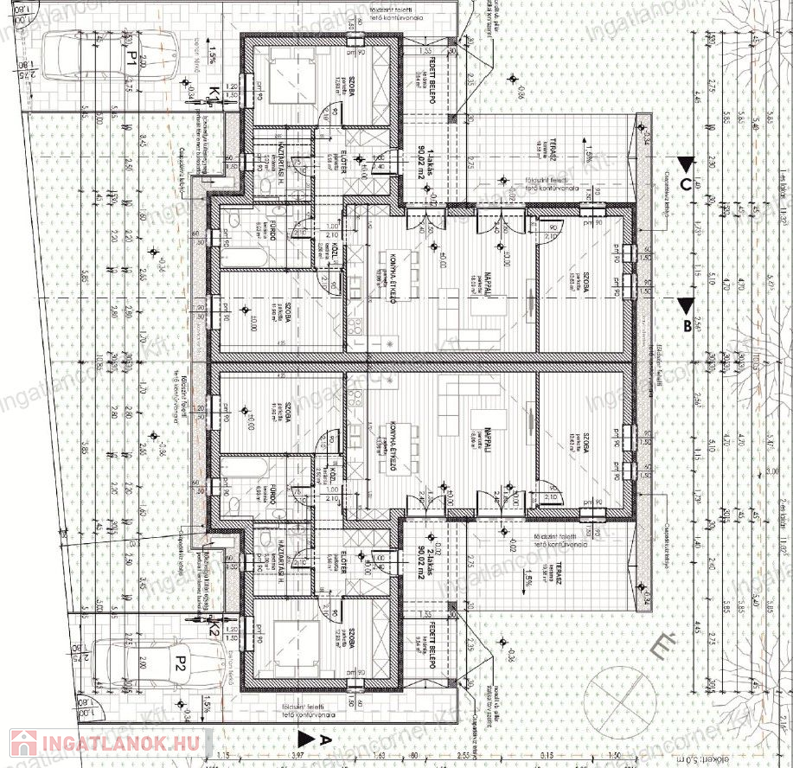 Az épületben két, egyenként 90 m2 hasznos alapterületű, KERTKAPCSOLATOS lakás került kialakításra (1. lakás: 575 m2, 2. lakás: 550 m2 kertkapcsolattal). Mindkét otthonhoz SAJÁT KÜLTÉRI GÉPKOCSI BEÁLLÓ tartozik. A lakások ELRENDEZÉSE PRAKTIKUS: 3 KÜLÖNÁLLÓ SZOBA, tágas nappali, étkező, MODERN konyha, fürdőszoba, háztartási helyiség és közvetlen KERTKAPCSOLATOS TERASZ.