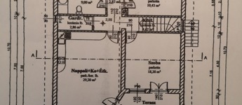 A három szintes, összesen 235 nm-es, két külön bejáratú lakásból álló ház 666 nm-es telken fekszik, főúthoz közeli csendes mellékutcában.