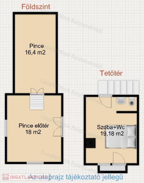 - két szinten összesen 37 m2 nettó alapterületű ház + pince